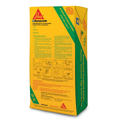 Ronabond® Premixed Render is a polymer enhanced mortar with waterproofing function designed for internal and external render applications. Ronabond® Premixed Render is pre-bagged ensuring correct mixing proportions which avoids possible mixing errors on site. Ronabond® Premixed Render is suitable for hand or spray application and can be applied to a variety of substrates.